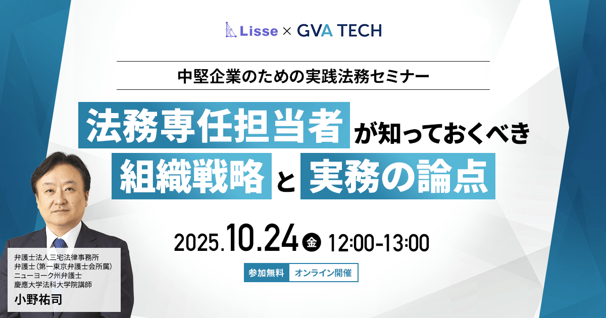 【10月24日開催/無料法務セミナー】中堅企業のための実践法務セミナー 法務専任担当者が知っておくべき組織戦略と実務の論点
