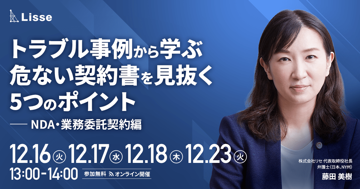 【12月開催セミナー】トラブル事例から学ぶ危ない契約書を見抜く5つのポイント(NDA・業務委託契約編)