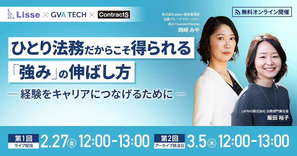 【無料ウェビナー】ひとり法務だからこそ得られる「強み」の伸ばし方― 経験をキャリアにつなげるために ―