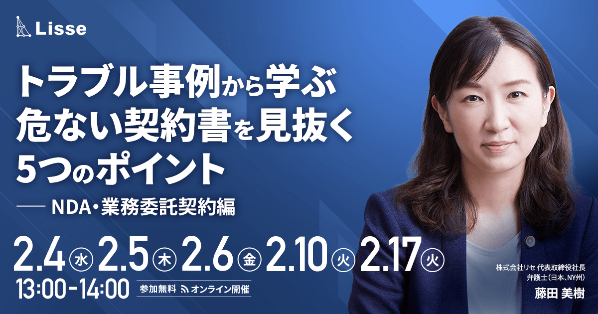 【2月開催セミナー】トラブル事例から学ぶ危ない契約書を見抜く5つのポイント(NDA・業務委託契約編)