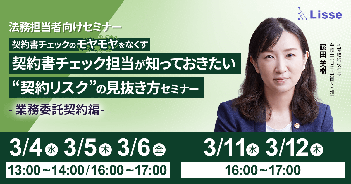 【3月開催セミナー】\契約書チェックの「モヤモヤ」をなくす!/ 契約書チェック担当が知っておきたい “契約リスク”の見抜き方セミナー 業務委託契約編