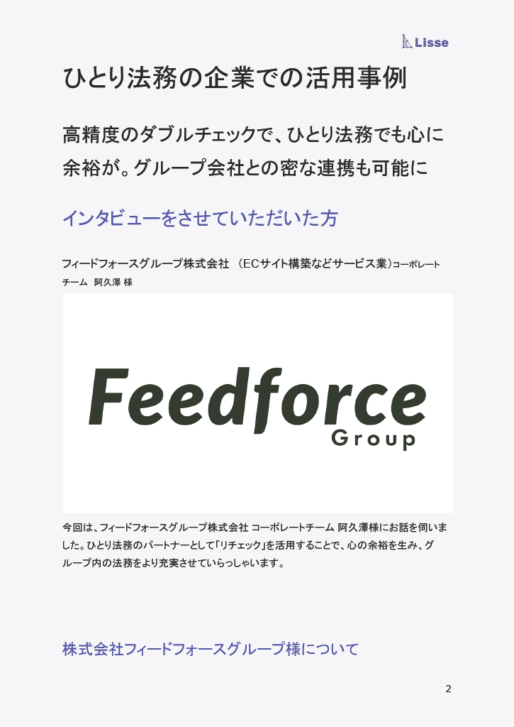 - フィードフォースグループ株式会社様 -ひとり法務でも心に余裕が-