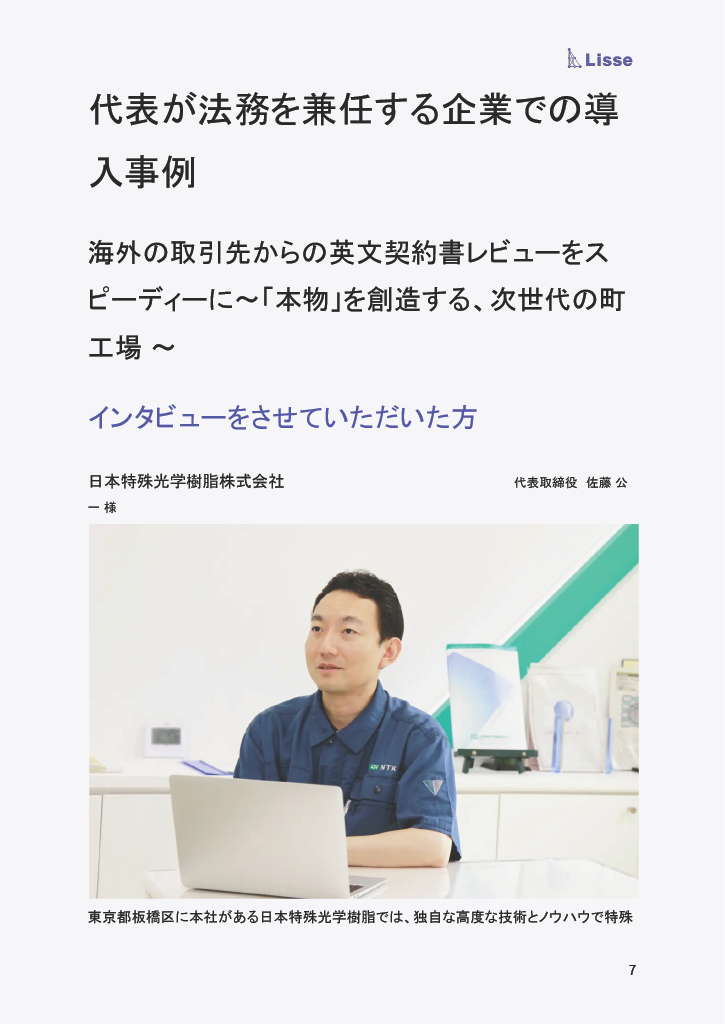 - 日本特殊光学樹脂株式会社様 -英文契約の確認時間を大幅短縮-
