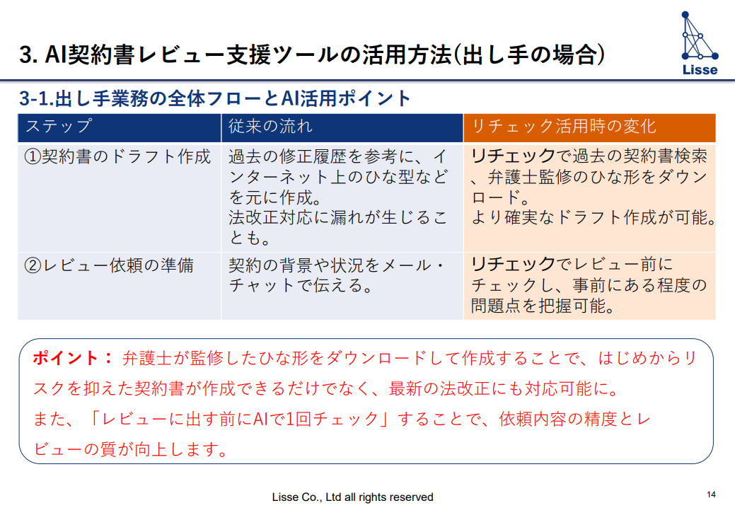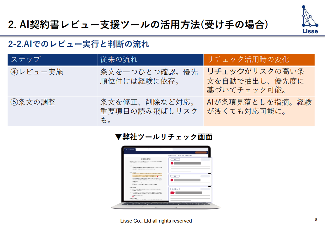 • 契約上の立場別 AI契約書レビュー支援ツールの活用方法