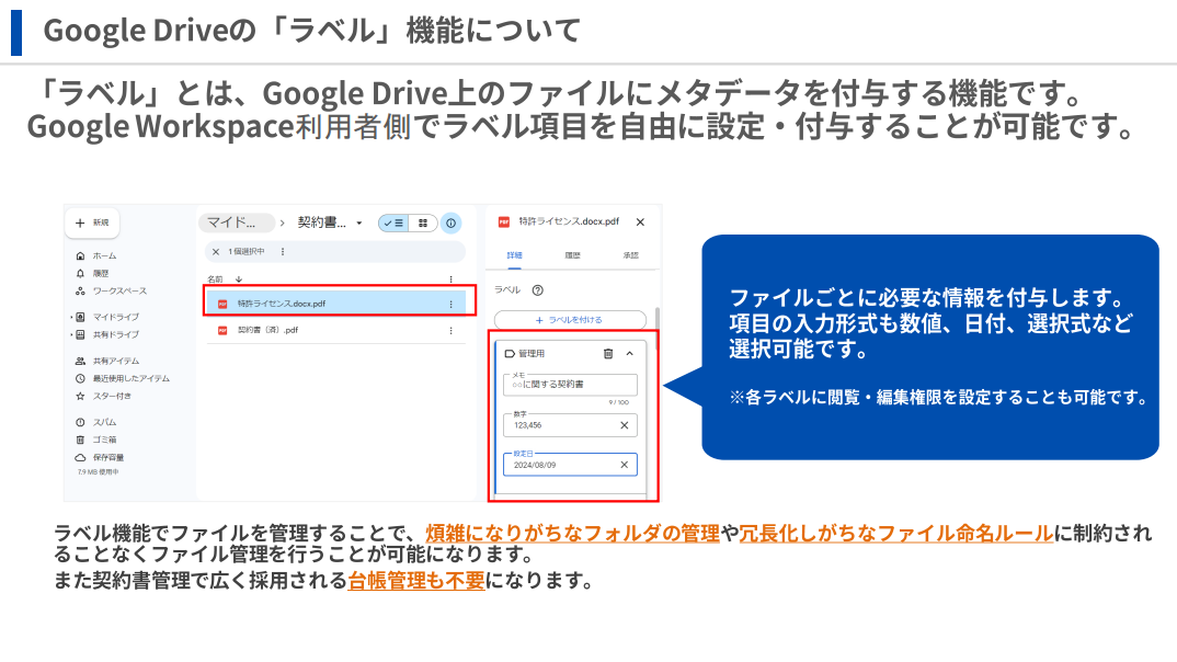 かんたん1分入力 必要事項をご記入の上、お進みください。 フォーム送信完了後、 折返し資料をお送り致します。 GoogleDriveで上手なファイル管理方法のご案内 資料ダウンロード この資料で分かること GoogleDriveでファイル管理に便利な機能とは? GoogleDriveの機能ご紹介 GoogleDriveのラベル機能とは? GoogleDriveを使った、「アプリケーション型契約書管理ツール」をご紹介 必要事項をご記入の上、お進みください。 フォーム送信完了後、折返し資料をお送り致します。