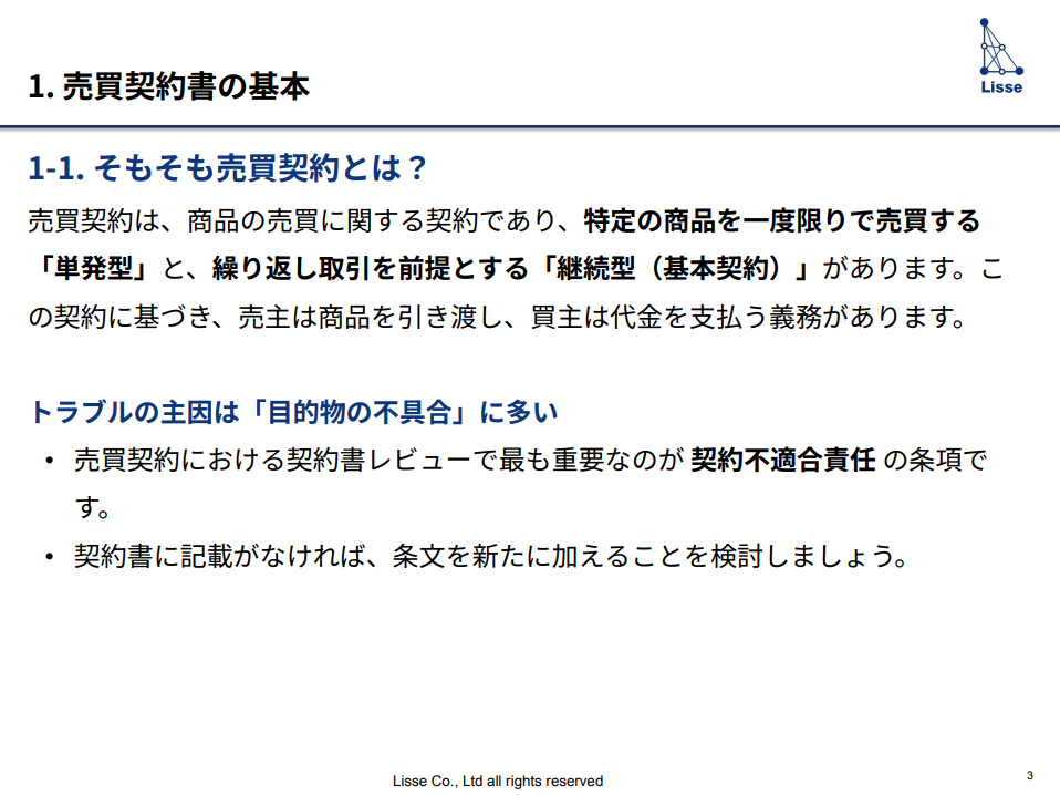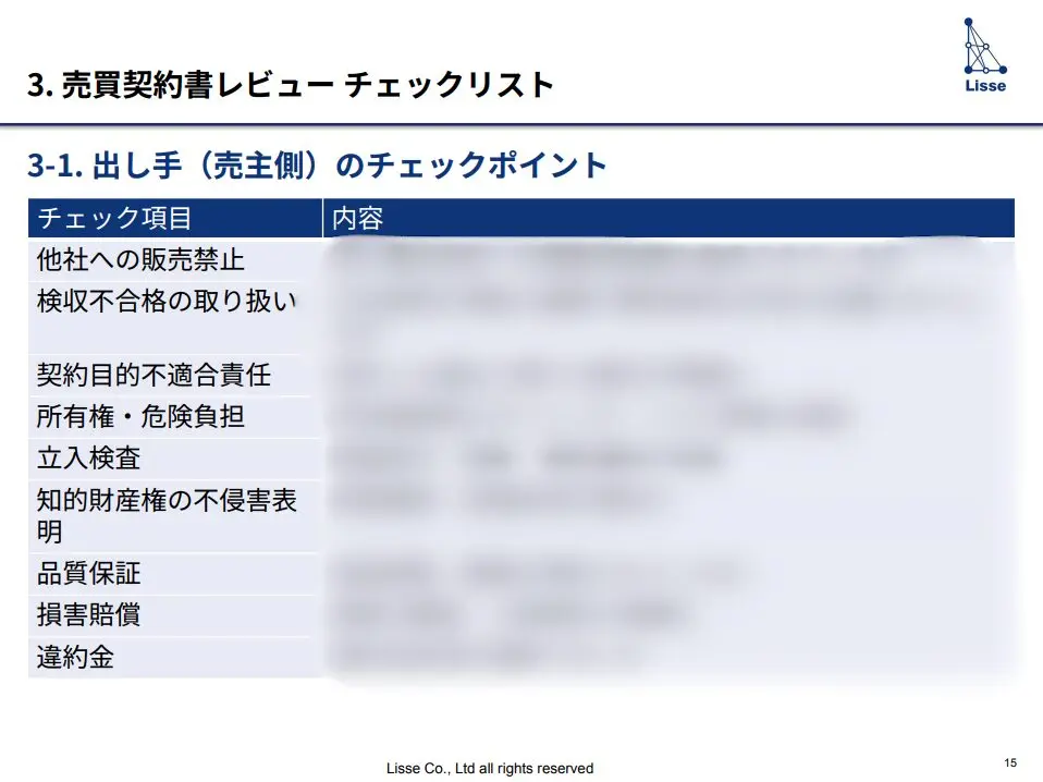 かんたん1分入力 必要事項をご記入の上、お進みください。 フォーム送信完了後、 折返し資料をお送り致します。 売買契約書チェックリスト&トラブル実例集 見落としがちなリスクを徹底解説! 資料ダウンロード この資料で分かること 売買契約書の基本 3つのトラブル事例 売買契約書レビュー チェックリスト リスク防止にAI契約書レビュー支援ツールの活用が有効 売買契約におけるAI契約書レビュー支援ツール活用のステップ 必要事項をご記入の上、お進みください。 フォーム送信完了後、折返し資料をお送り致します。